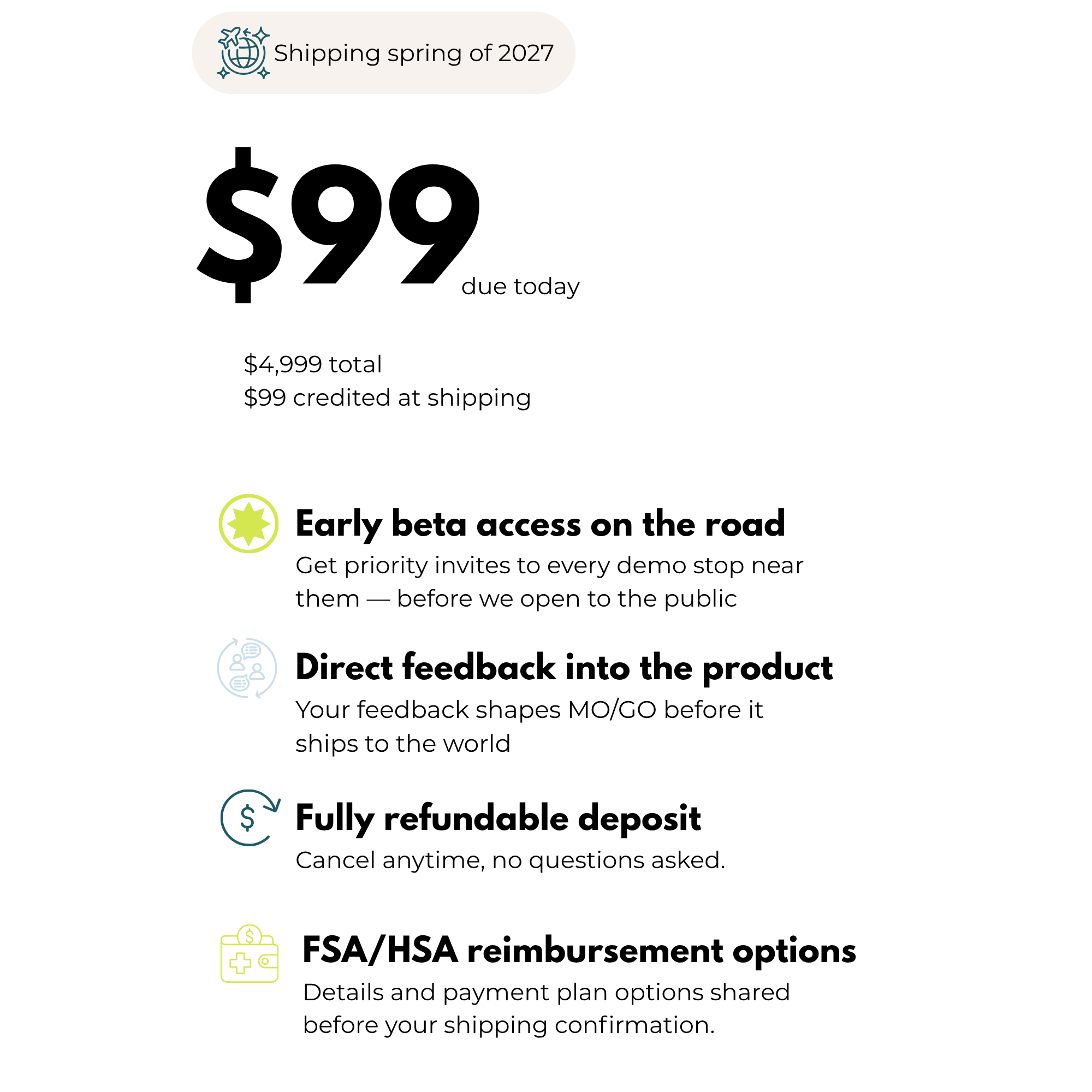 Not ready to commit? Try MO/GO first at a demo near you — and your $80 demo fee applies toward your pre-order if you reserve the same day.